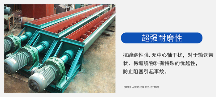 4、扭距大、能耗低:由于螺旋無軸、物料不易堵塞,因而可以較低速度運轉,平穩傳動,降低能耗。